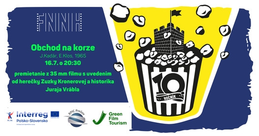 W ramach inicjatywy GreenFilmTourism realizujemy działania, które będą wspierać rozwój turystyki filmowej oraz zrównoważone wykorzystanie dziedzictwa kulturowego i przyrodniczego pogranicza polsko-słowackiego. Będziemy współorganizować Noc Filmową na Zamku 2022, w ramach której odbędzie się specjalny pokaz arcydzieła filmowego "Sklep przy głównej ulicy" z galowym występem aktorki Zuzany Kroner i historyka Juraja Vrabla. Pokaz będzie miał miejsce w historycznie cennej przestrzeni Zamku Šariš.