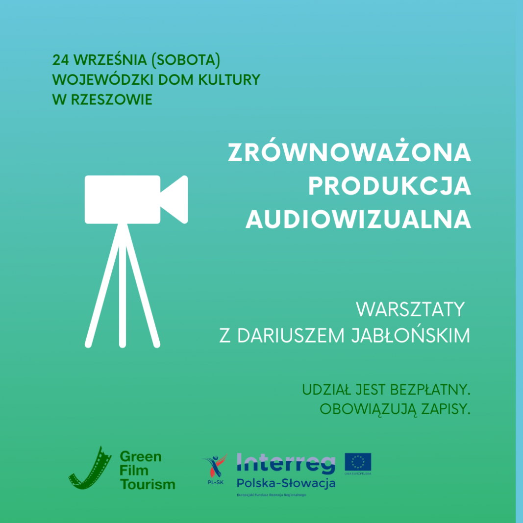 Zapraszamy na warsztaty dot. zrównoważonej produkcji filmowej dla przedstawicieli sektora produkcji filmowej i telewizyjnej, które odbędą się 24 września 2022 r. w Wojewódzkim Domu Kultury w Rzeszowie w godzinach 10:00-14:00.