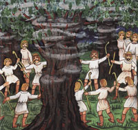 W „świętym gaju” rosły potężne dęby, a wśród nich maleńki modrzew. Wstęp do gaju miał tylko kapłan, który wyznaczał uroczystości i przyjmował ofiary kierowane do Peruna.